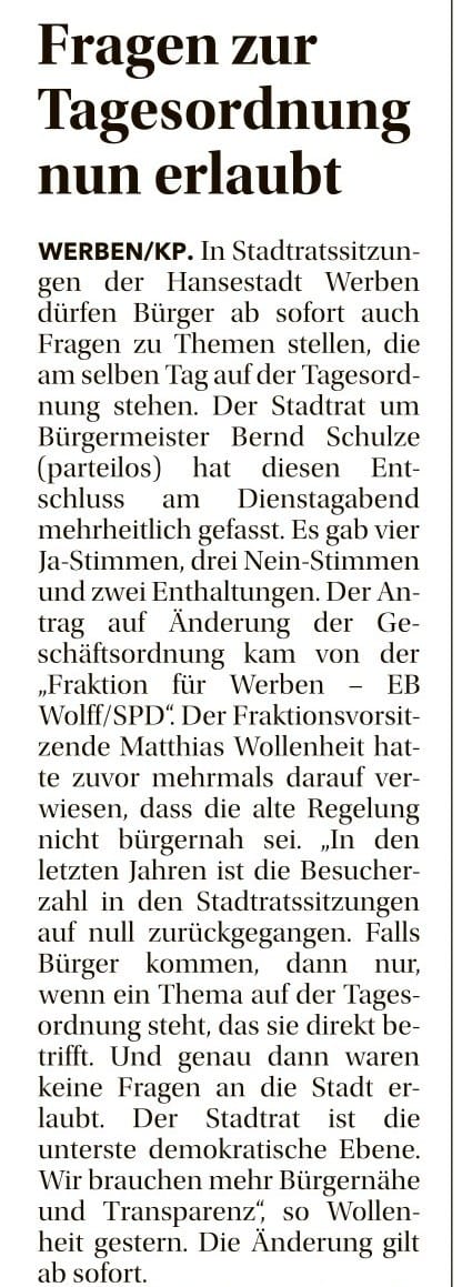 die Kommunalpolitik mit einem speziell für Werben passenden und